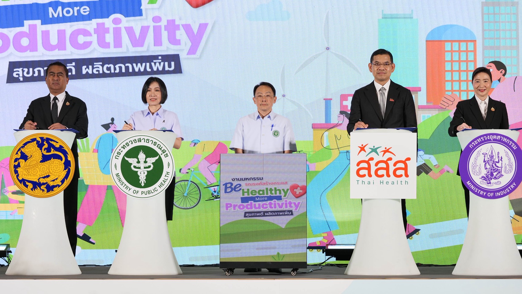 นมหกรรมรณรงค์ สร้างกระแส ”Be Healthy More Productivity” และร่วมพิธีลงนามบันทึกความร่วมมือ (MOU) สานพลัง 6 องค์กรภาคี เพื่อวัยทำงานสุขภาพดี ที่ยั่งยืน